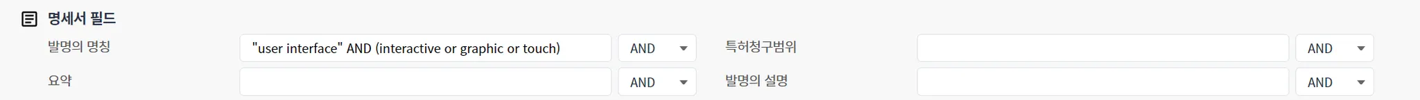 키워드는 특허별로 추출/가공해 놓은 키워드를 검색해 줍니다. “키워드 A” and “키워드 B”를 활용하면, “키워드 A”와 “키워드 B”가 동시에 출현되고 있는 특허를 검색해 줍니다.