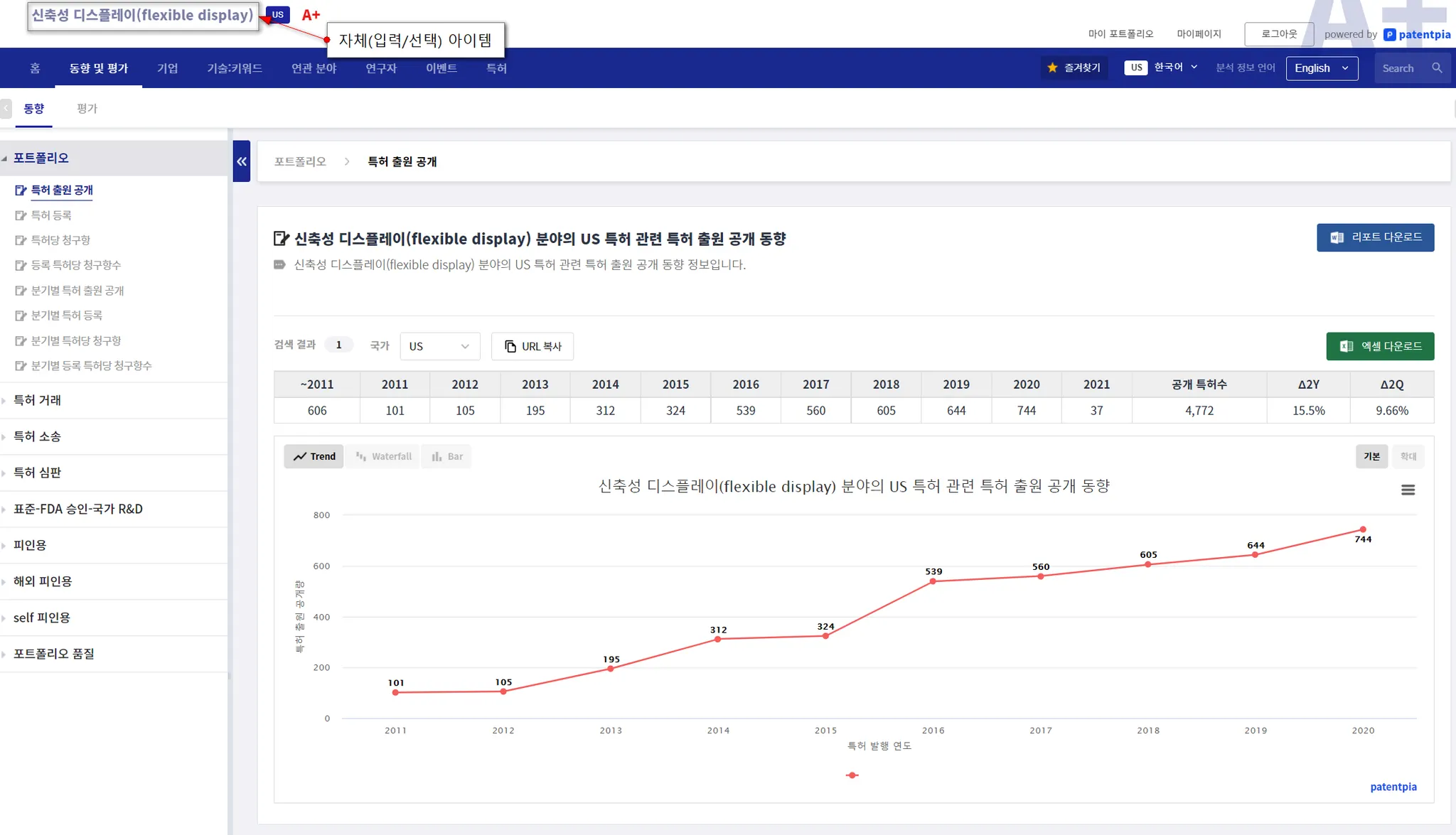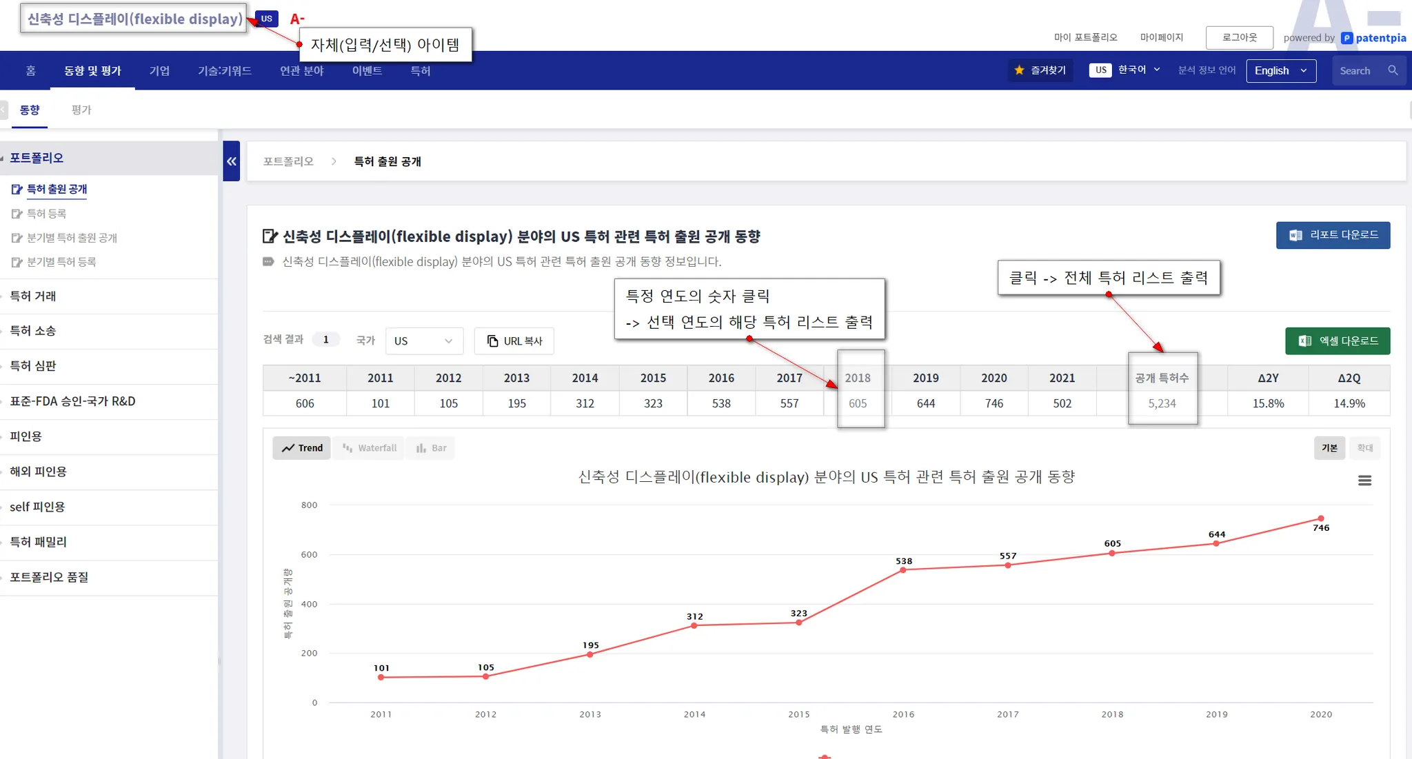 공개 특허수 밑에 있는 수치값을 클릭하면, 아래와 같은 화면이 나타납니다.