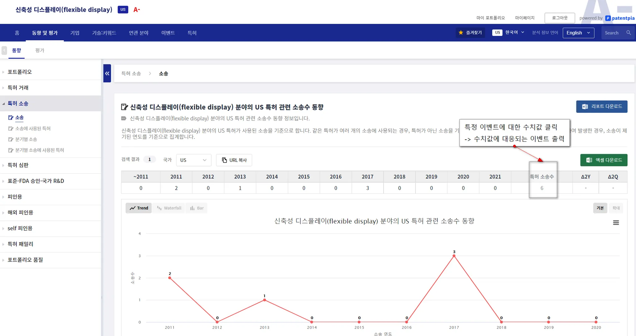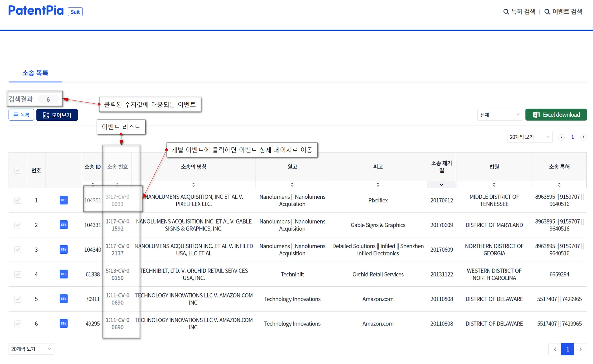 GoldenCompass 서비스를 포함하여, PatentPia 모든 서비스는 최대한 자세한 근거 데이터를 제공하려고 노력하고 있습니다. GoldenCompass의 분석 결과에는 다양한 숫자들이 나타나는데, 숫자에 대한 근거 또는 근거가 되는 리스트(상세한 검토, 정밀 재분석 등 다양한 목적으로)를 알고 싶을 수 있습니다.