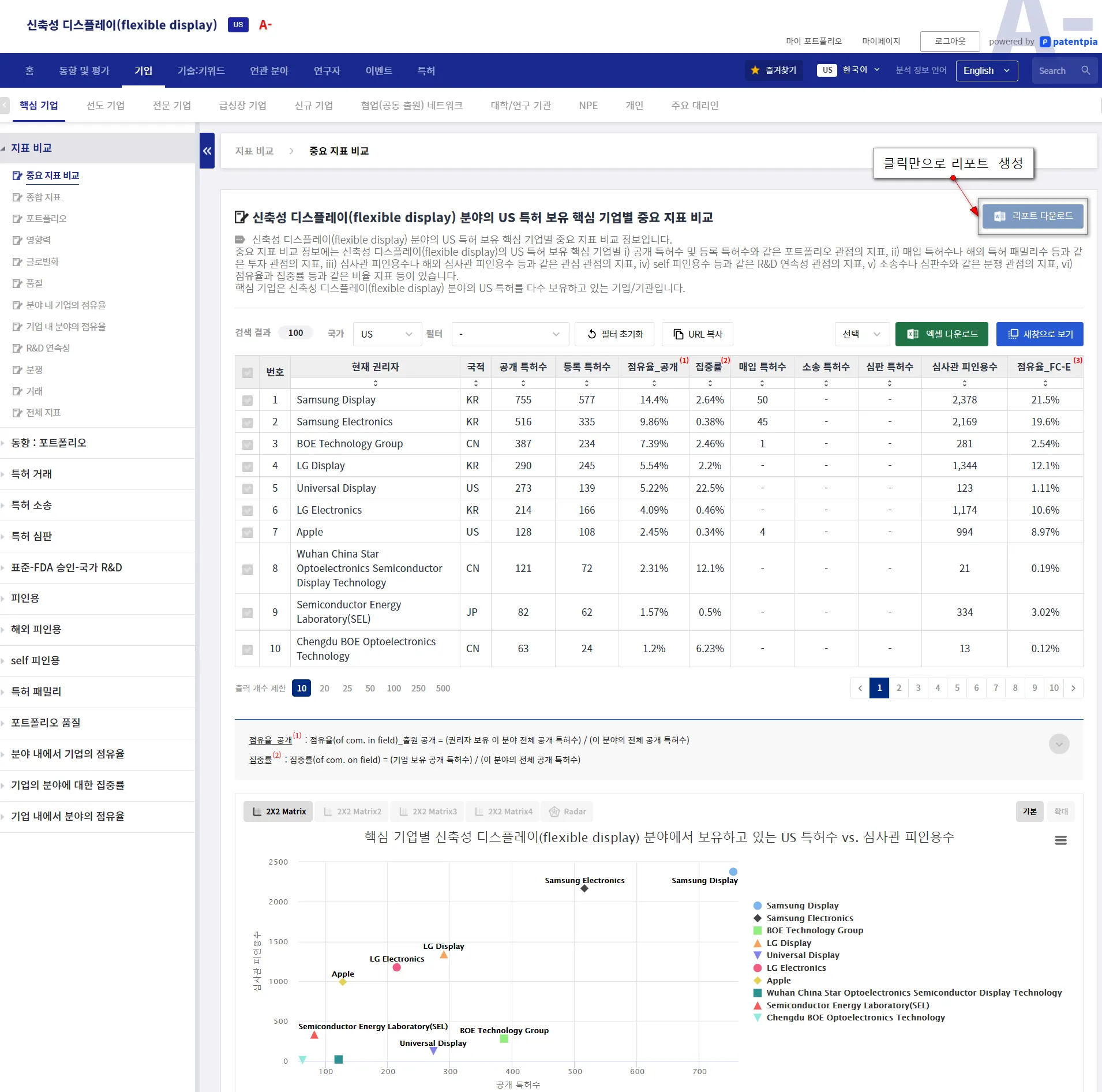 GoldenCompass의 모든 분석 결과 페이지에서, 분석 표 오른쪽 상단에 있는 "리포트 다운로드" 버튼을 클릭하면, 리포트가 생성됩니다.