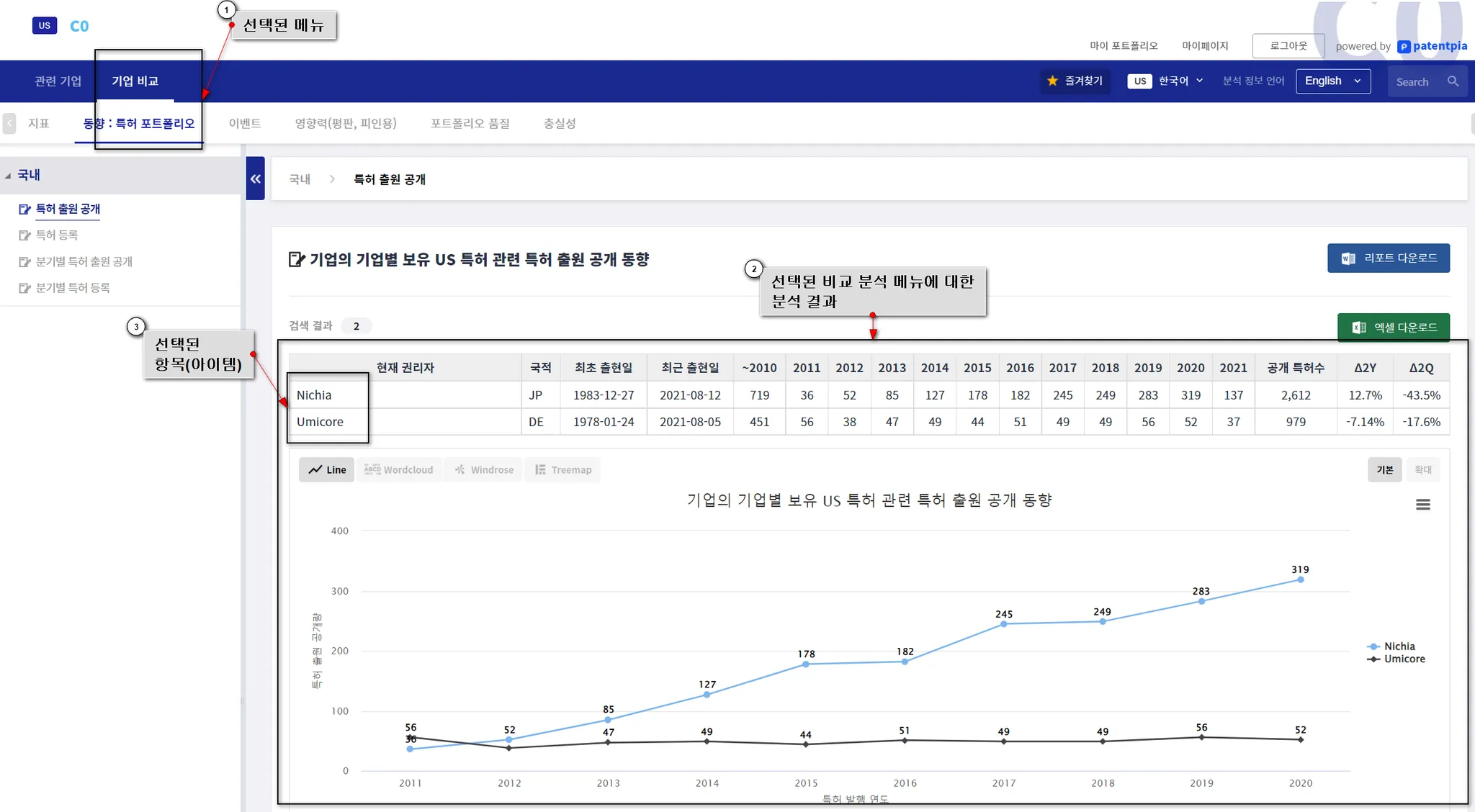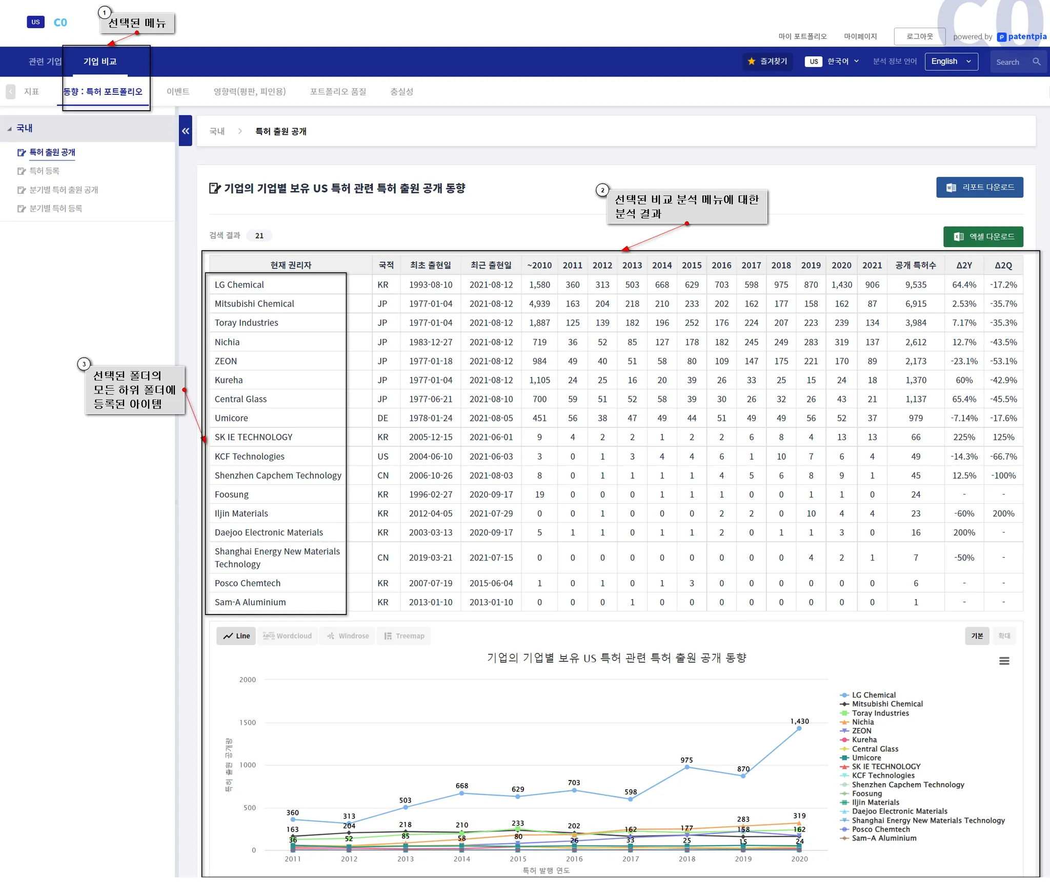 따라서, 이 경우, 최말단 폴더가 아닌 특정 폴더를 선택하고, 비교 분석 메뉴를 선택하면, 그 특정 폴더 하위에 있는 모든 기업을 대상으로 한 비교 분석이 가능하게 됩니다.