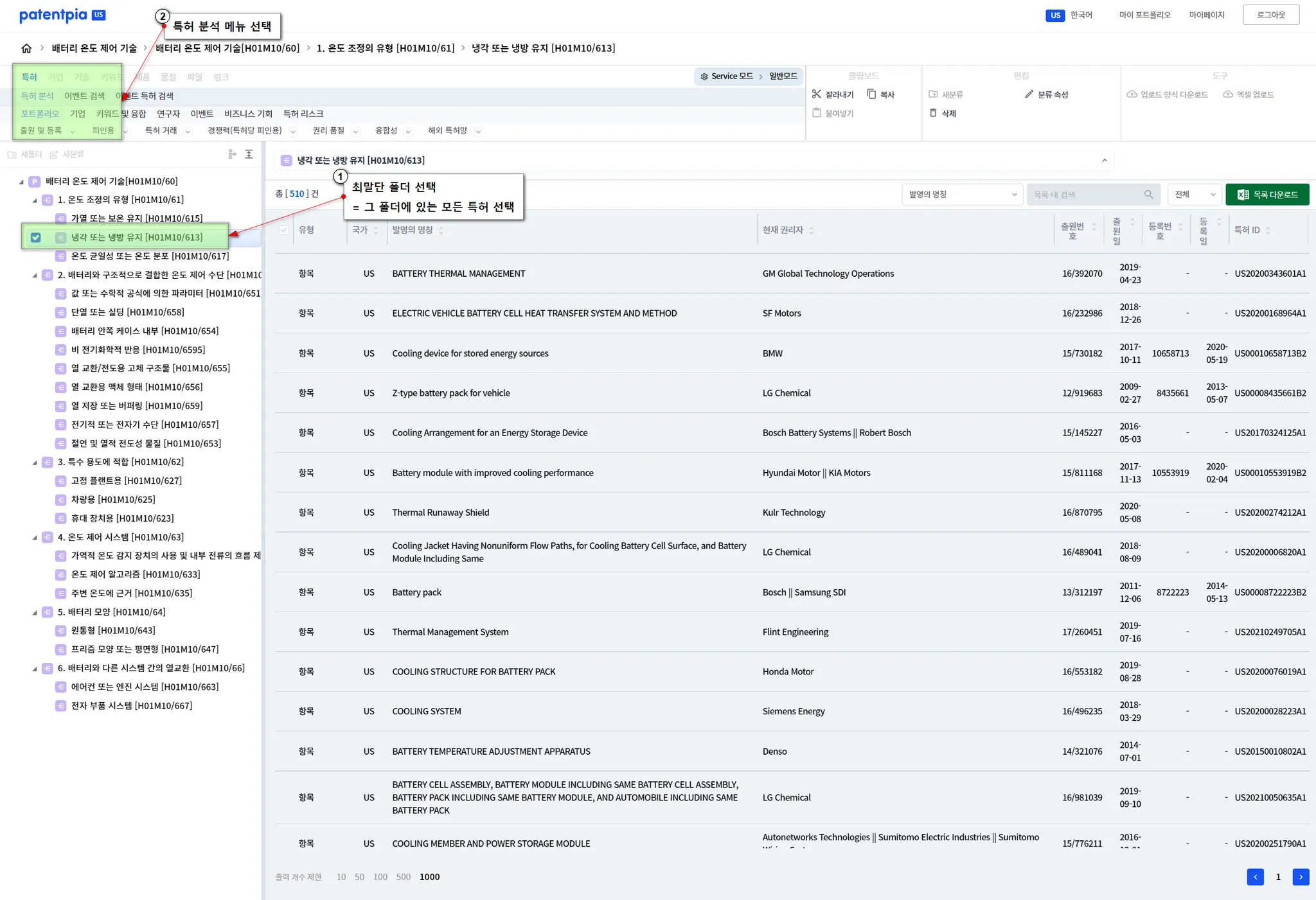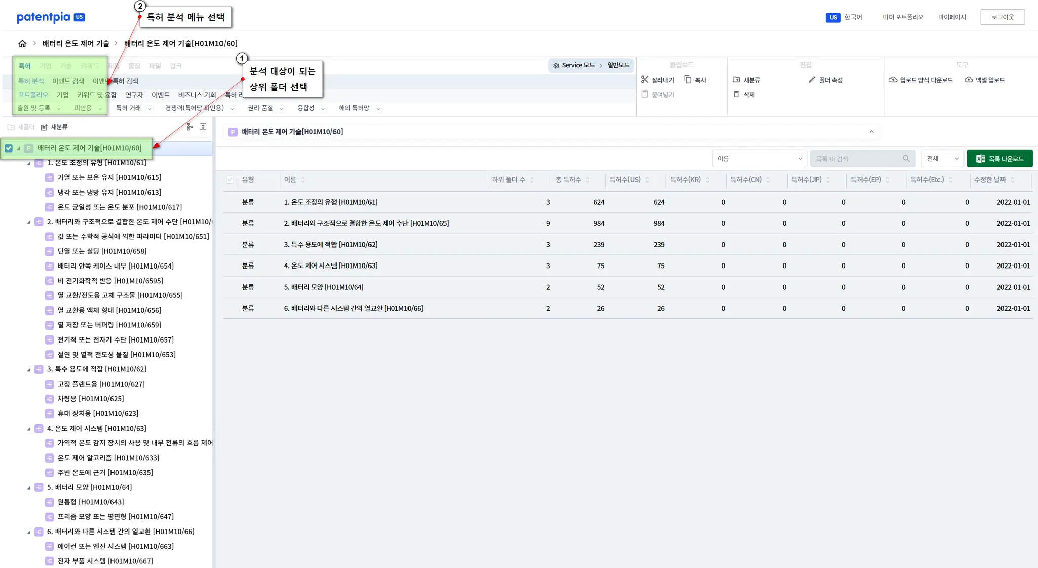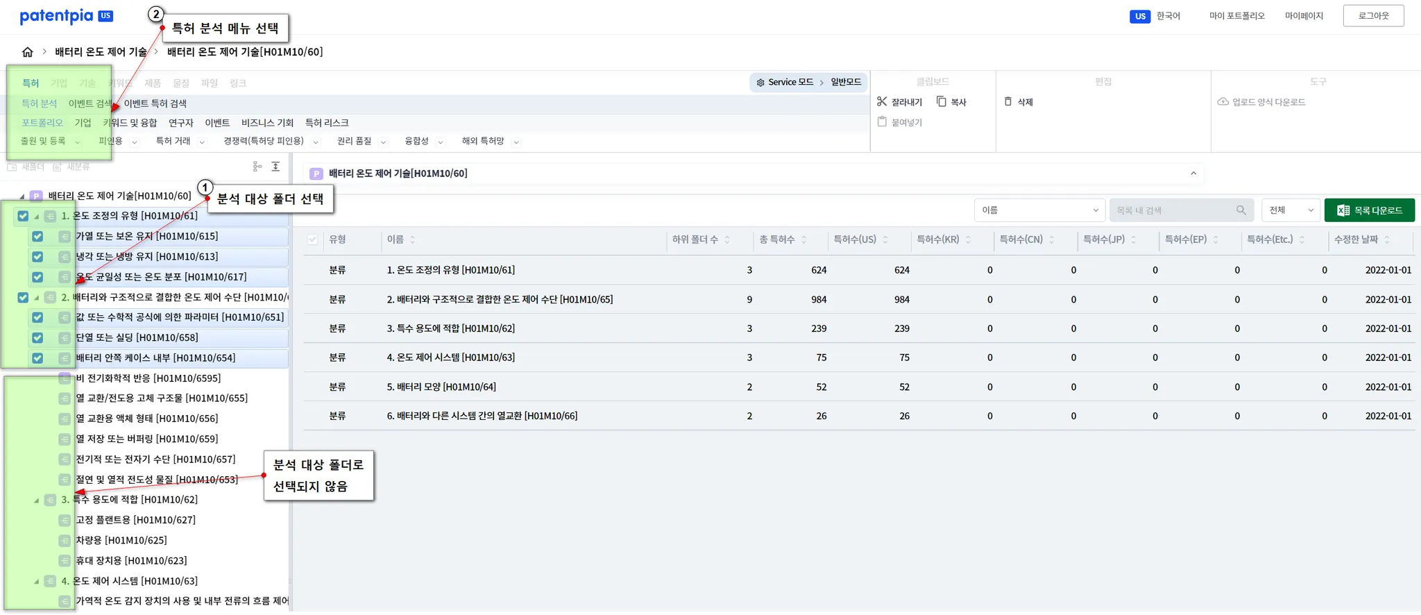My 포트폴리오에서 상위 폴더 선택 → Analytics 활용 특허 분석
