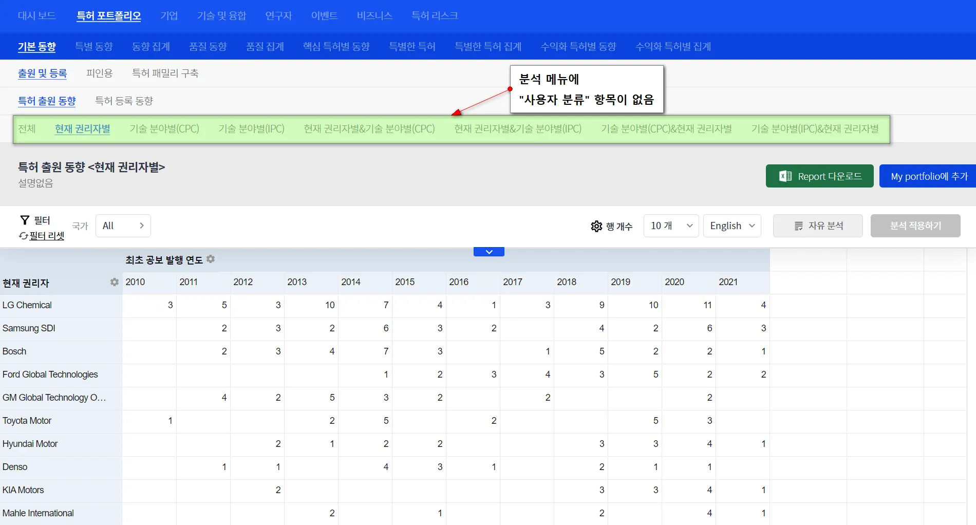 참고로, 사용자 분류가 있는 다량의 특허 리스트를 My 포트폴리오에 업로드 하는 것에 대해서는 “등록 특허셋 → 실시간 분석(Analytics)” 페이지의 "사용자 분류가 있는 특허셋의 분석 예시_배터리 온도 제어 세부 분야별 US 특허” 항목의 Step 1 ~ Step 5 부분을 참고하세요.