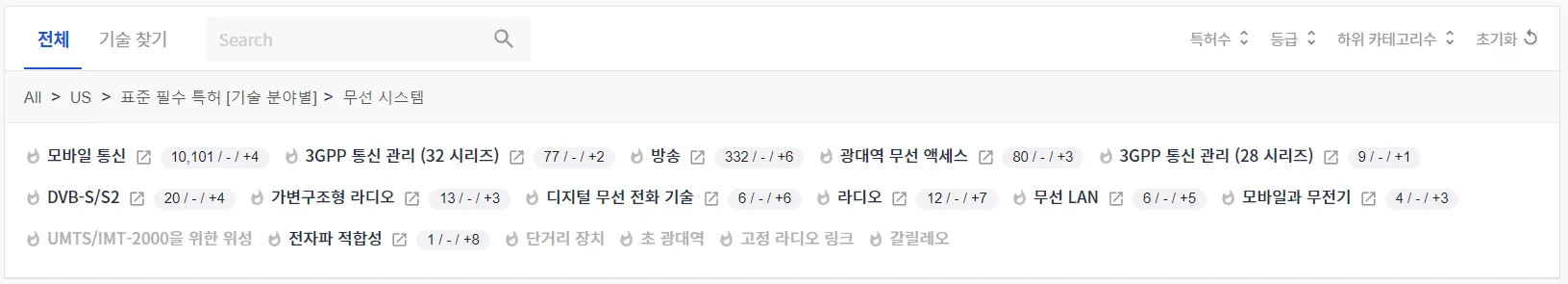 표준 필수 특허 [기술 분야별] 카테고리(분류)를 탐색합니다.