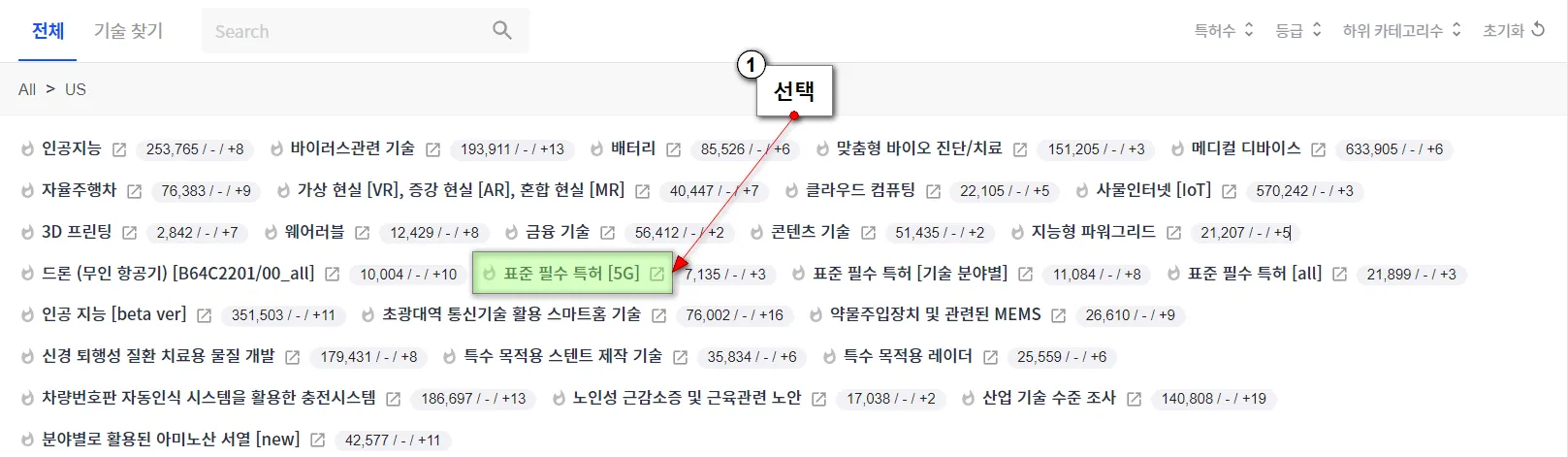 Step 1 : “표준 필수 특허 [5G]” 선택