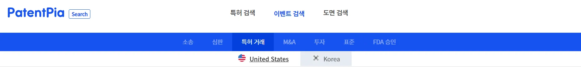특허 거래 검색은 PatentPia Search의 이벤트 검색 하위에 있습니다.