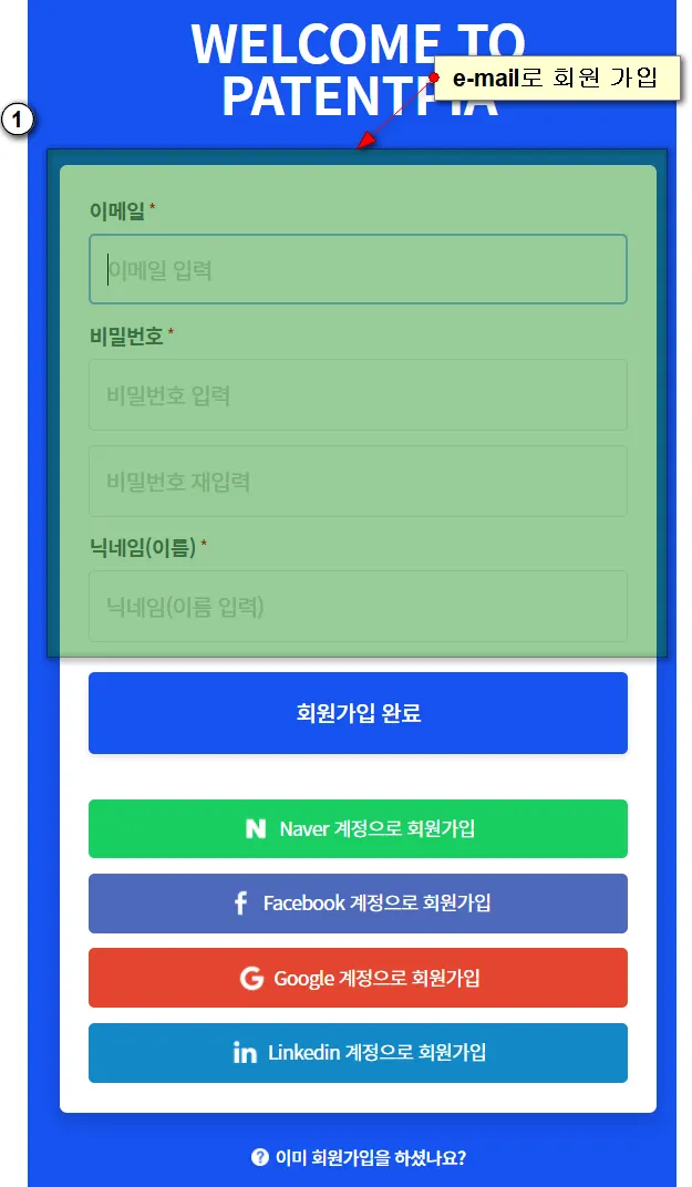 e-mail 주소 및 비밀 번호로 회원 가입이 됩니다.