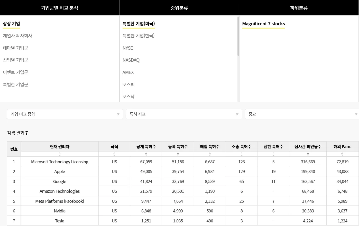 테마 기업 간, 비교 분석 메트릭에는 i) 포트폴리오, ii) 영향력, iii) 글로벌화, iv) 품질, v) 점유율/집중률, vi) R&D 연속성, vii) 특허 거래(매입), viii) 소송, vx) 심판, x) 표준/FDA 승인/국가 R&D 등이 있습니다. 참고로, 점유율과 집중률은 분야가 특정되는 경우에만 유효한 메트릭입니다.