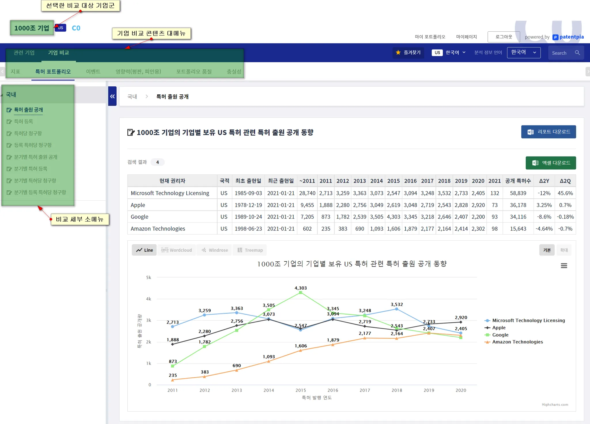 PatentPia가 제공하는 주제별 기업군은 크게 4가지 종류가 있습니다. i) 상장 기업군, ii) 기업 집단을 구성하는 계열사, iii) 테마별 기업군 iv) 이벤트 발생 기업군이 있습니다. 비교 대상이 되는 기업군의 종류는 지속적으로 확대됩니다. 특히, 지배 구조나 공급망, ETF 등을 구성하는 기업군, 각종 주제/테마/목적별 기업군, 글로벌 마켓 리더의 M&A/투자와 관련된 기업 등이 제공될 예정입니다.