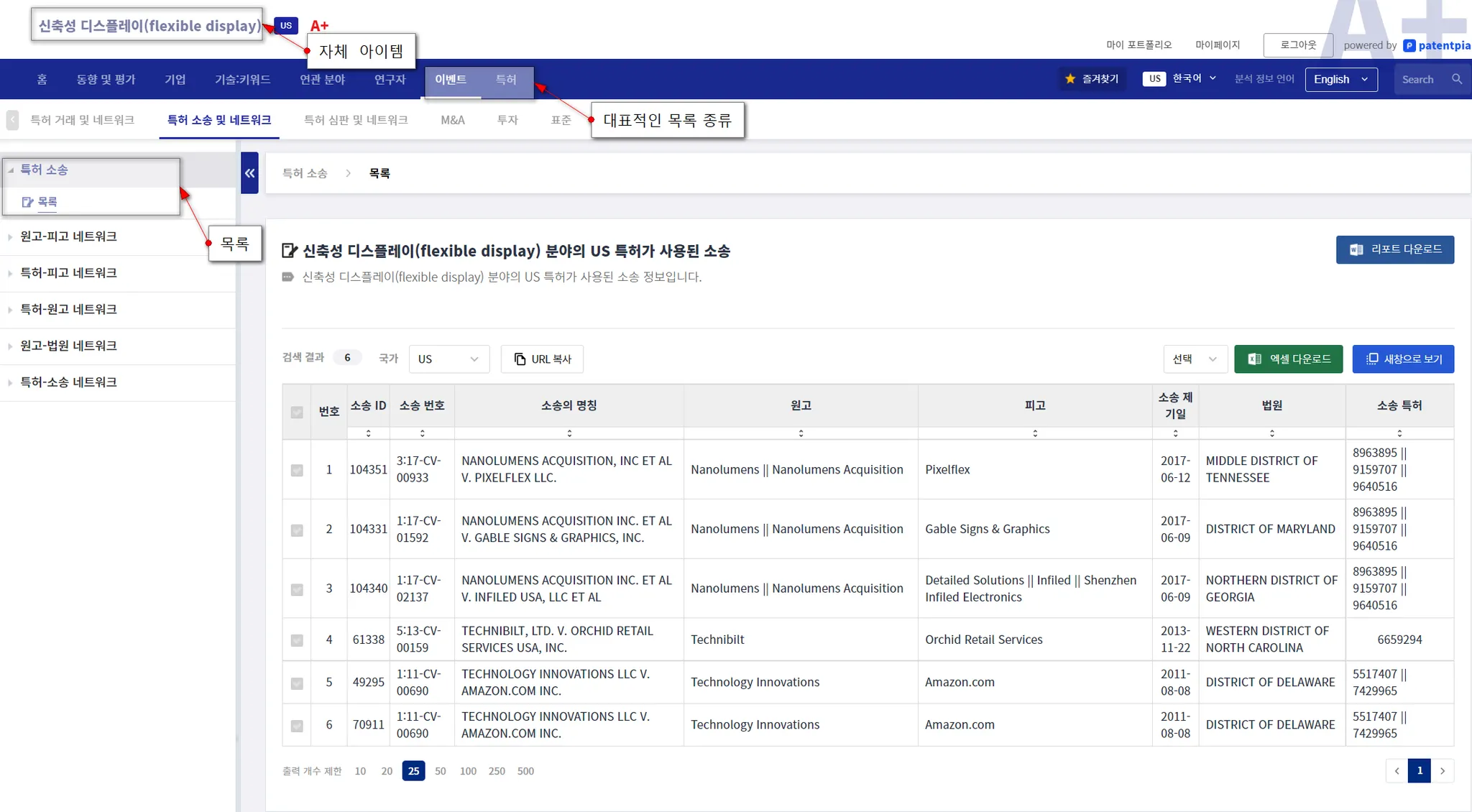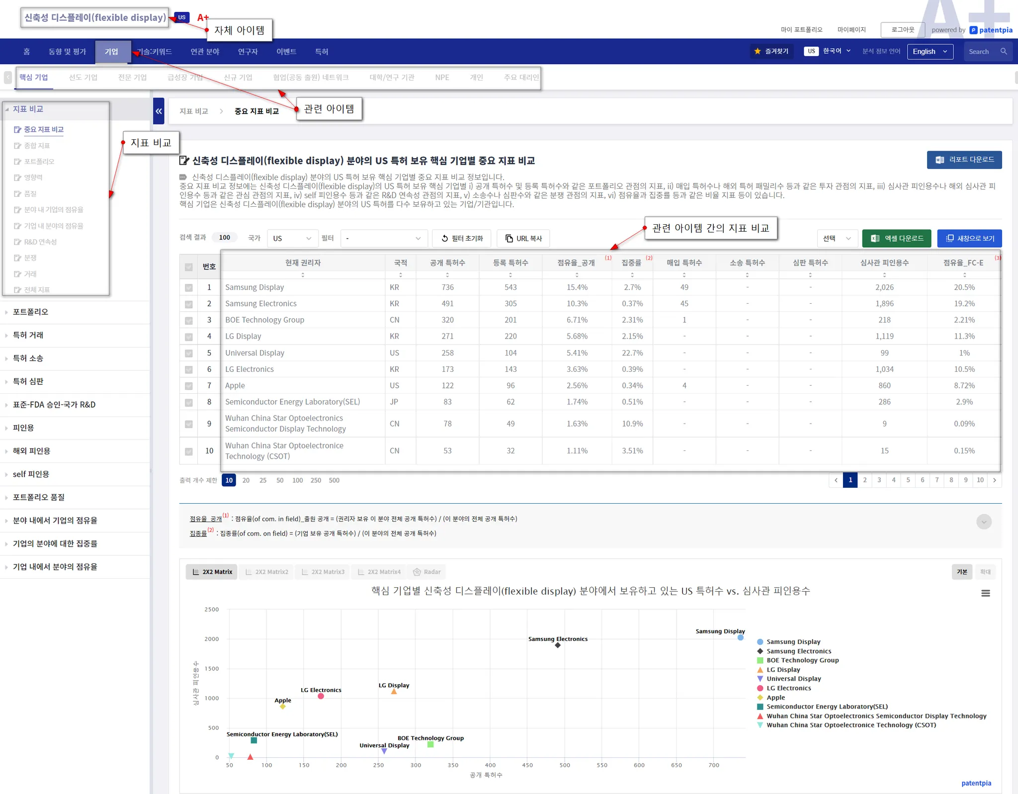 Apple을 관심 기업으로,flexible display를 관심 키워드 예시로, PatentPia GoldenCompass를 활용한 분석 결과의 종류 콘텐츠를 제공합니다. 위 활용 지도의 각 항목에 결합되어 있는 사슬(링크) 표시를 클릭하면, 예시 화면이 새 창으로 열립니다.