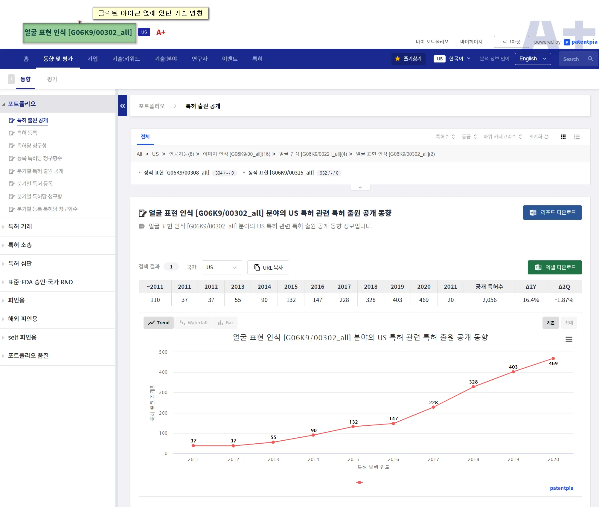 기술 명칭 옆에 있는 아이콘을 클릭하면, 해당 기술 명칭에 대응되는 각 국가별 기술 분석 콘텐츠(max 2,000여종)가 제공됩니다.