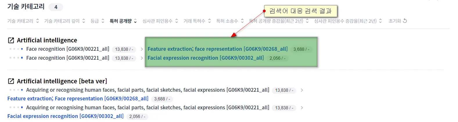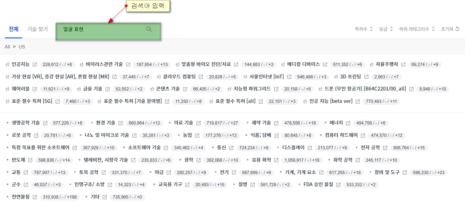 최상위 기술 분류 중에서 예시적으로 "인공지능"을 클릭/선택합니다.