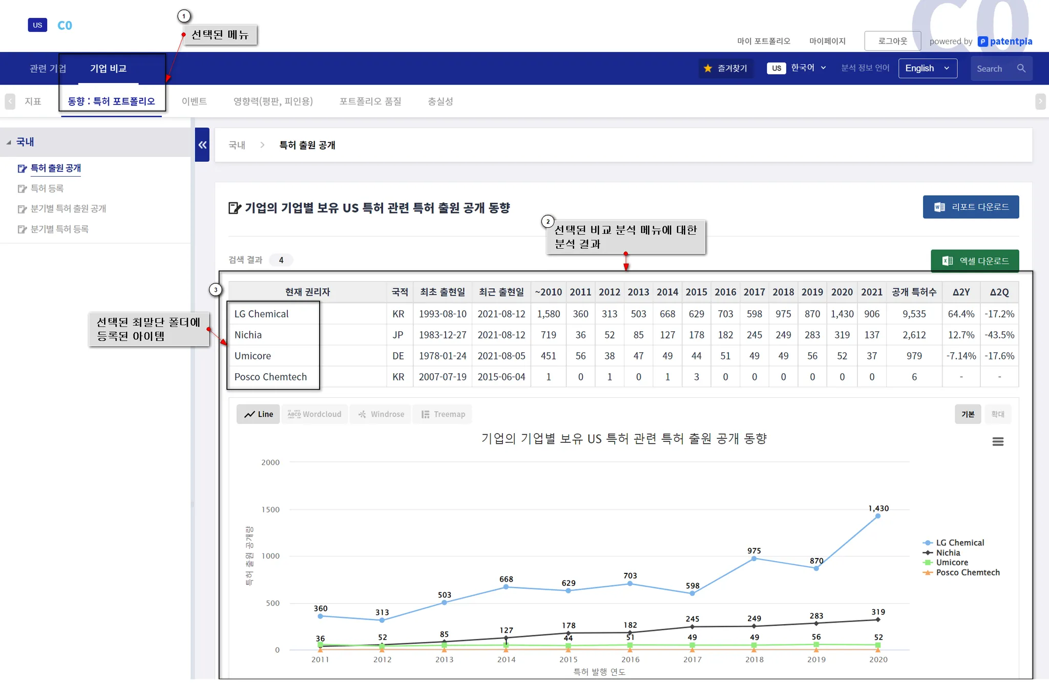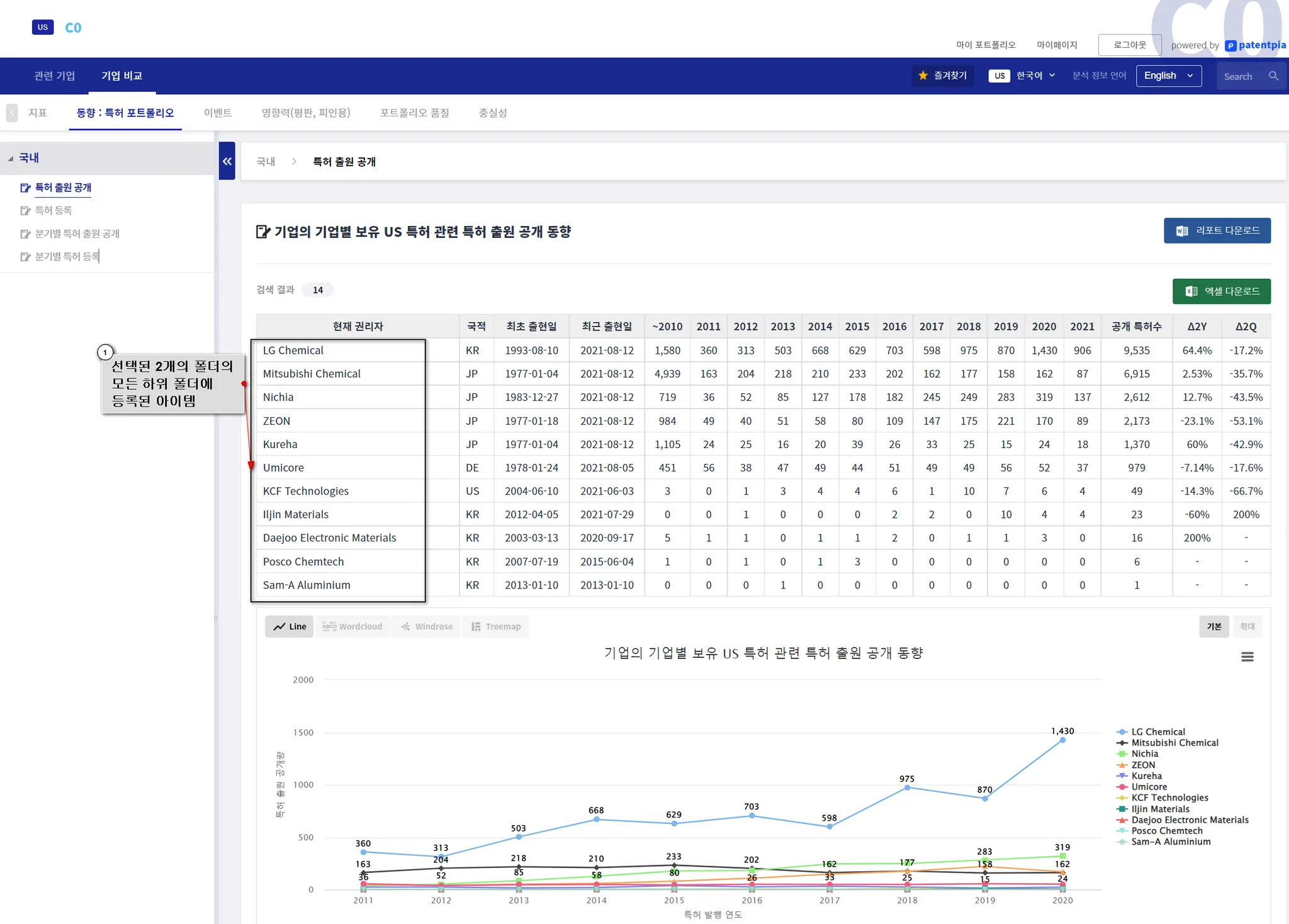 따라서, 이 경우, 최말단 폴더가 아닌 특정 폴더를 선택하고, 비교 분석 메뉴를 선택하면, 그 특정 폴더 하위에 있는 모든 기업을 대상으로 한 비교 분석이 가능하게 됩니다.
