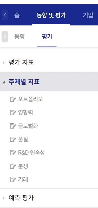 분석 지표에는 i) 중요 지표, ii) 종합 지표, iii) 주제별 지표, iv) 전체 지표(=예측 평가)와 같이 4종이 있습니다.
