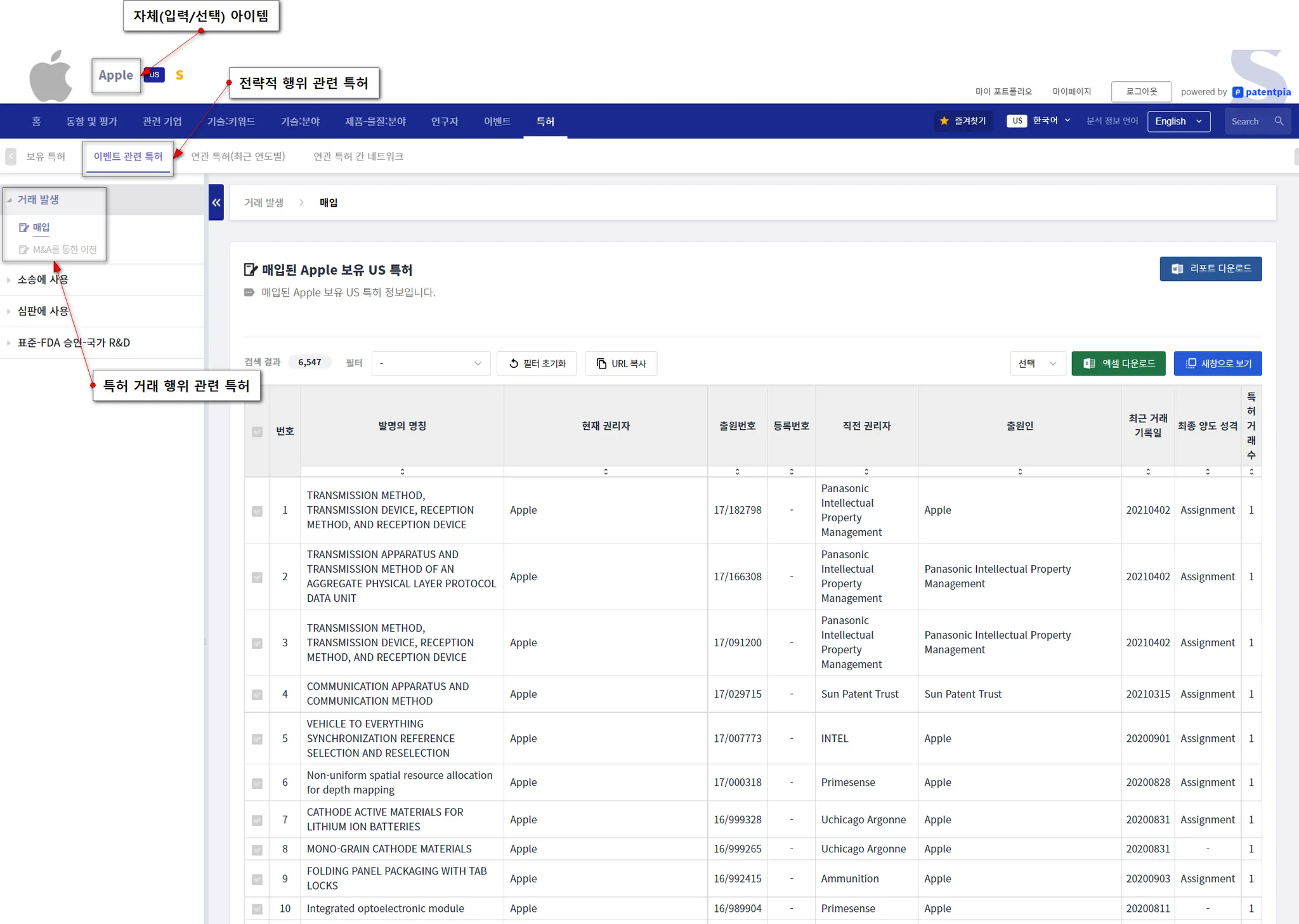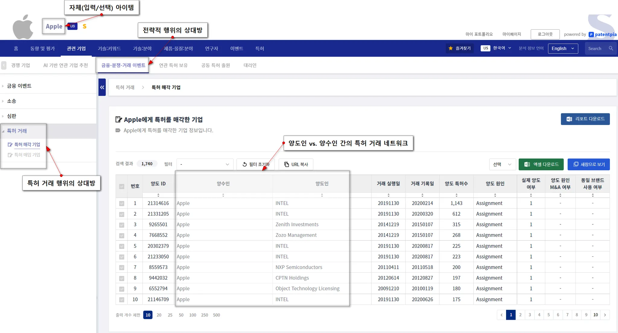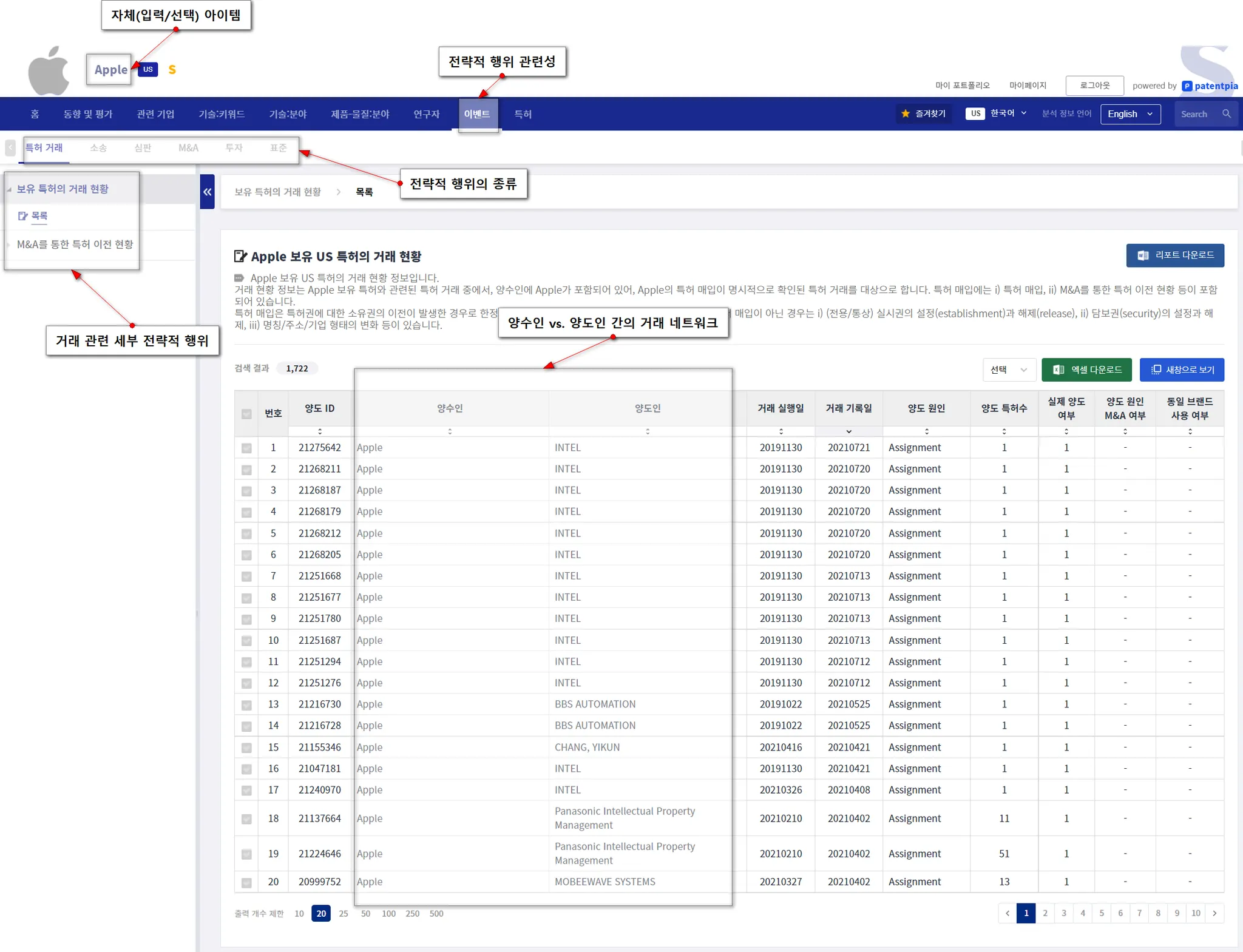 특허 거래 행위에는 i) 특허 매입, ii)M&A를 통한 특허 이전, iii) 기업 집단 내에서의 전략적 특허 재배치/재조정 등이 있습니다.