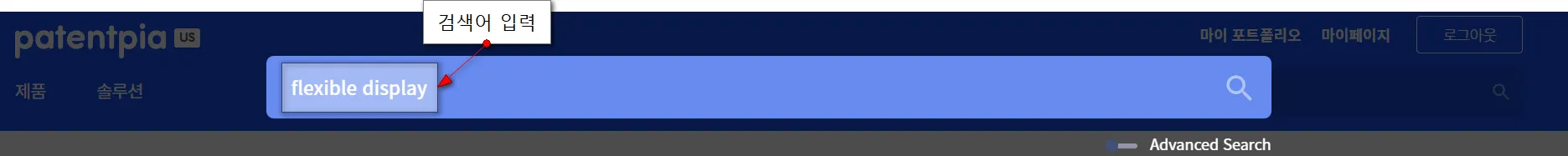검색 기본 서비스 유형은 검색 결과를 생성할 때에는 검색어를 입력하면 검색어가 포함된 검색 결과가 생성됩니다. 예시적으로 검색어로 "flexible display"를 입력합니다.