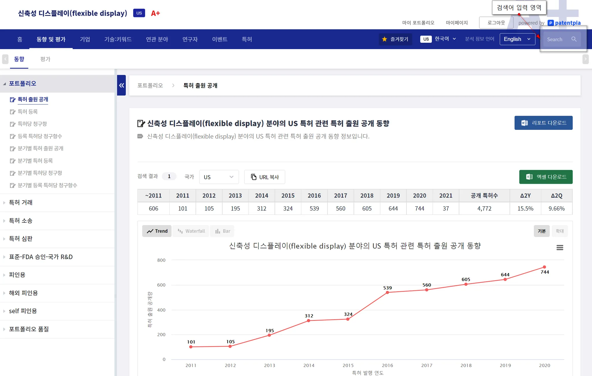 분석 결과 페이지에서도 오른쪽 최상단에 검색어 입력 영역이 있습니다.