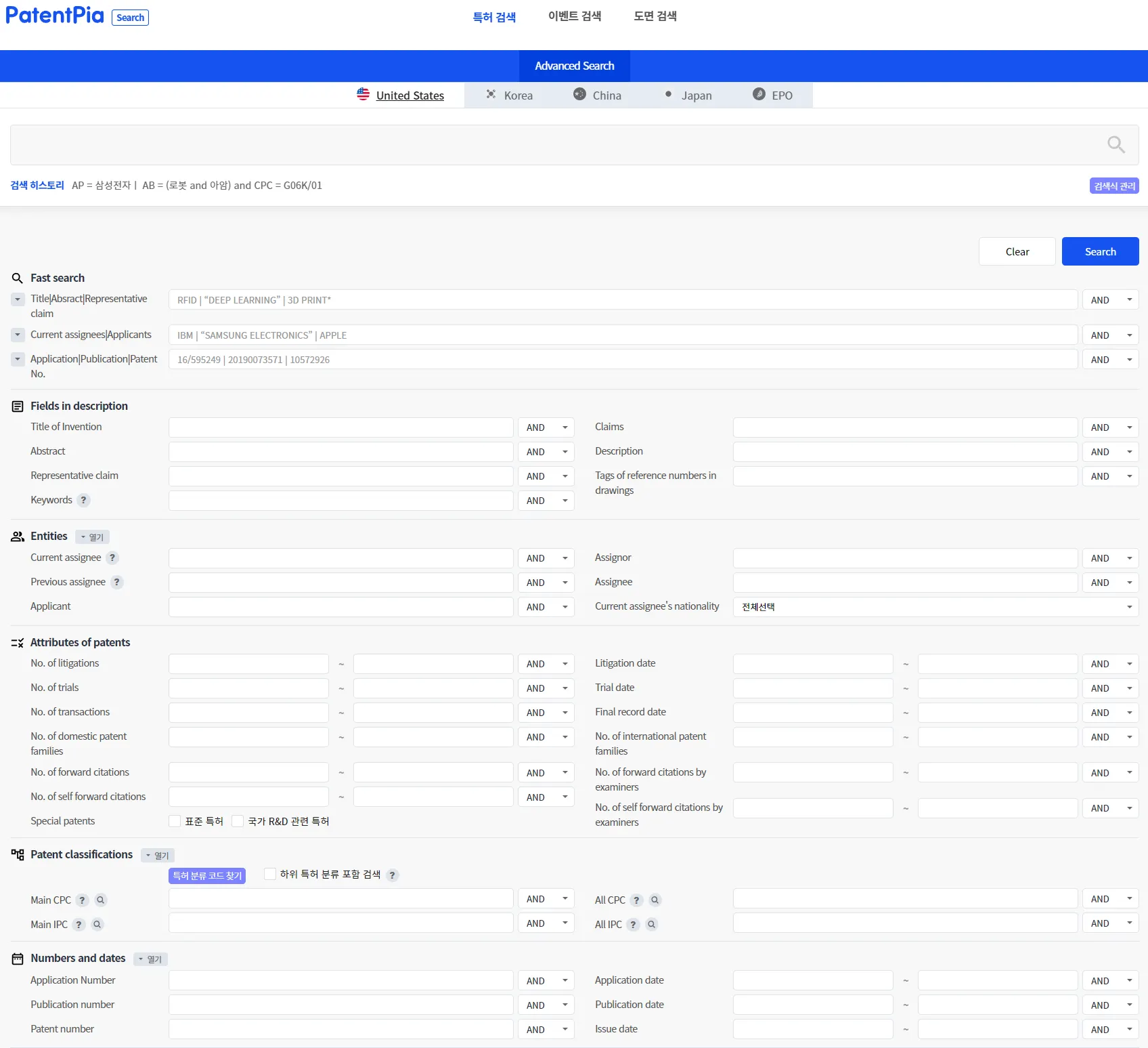 In PatentPia Search, you can search for patents, events, etc. using CPCs as search criteria.