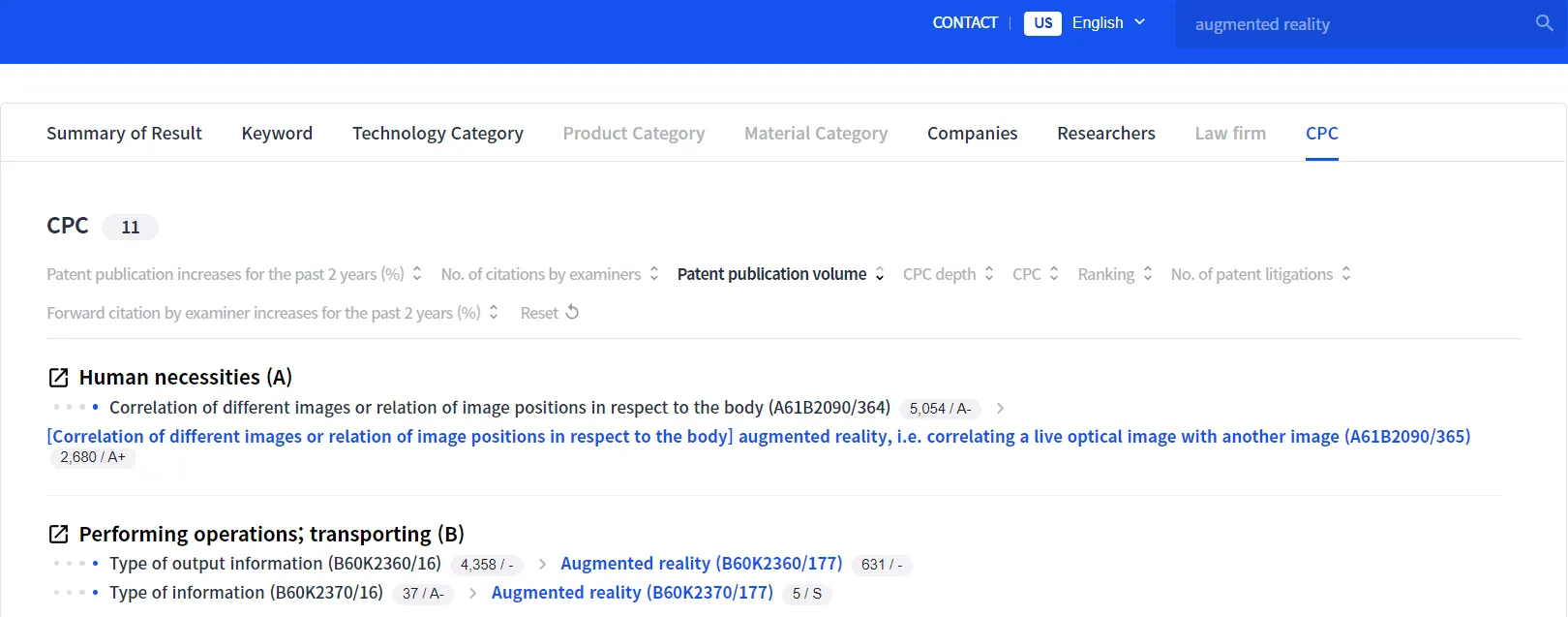 CPC includes advanced technologies such as artificial intelligence, virtual reality, etc. within its framework. As technology changes, new codes are being added to the CPC system or branched out and integrated. As a result, each nation's intellectual property office notifies the public of newly emerging CPCs. In addition, to help you identify patents that have changed their patent classification, we provide a 'patent vs. current classification' mapping data.