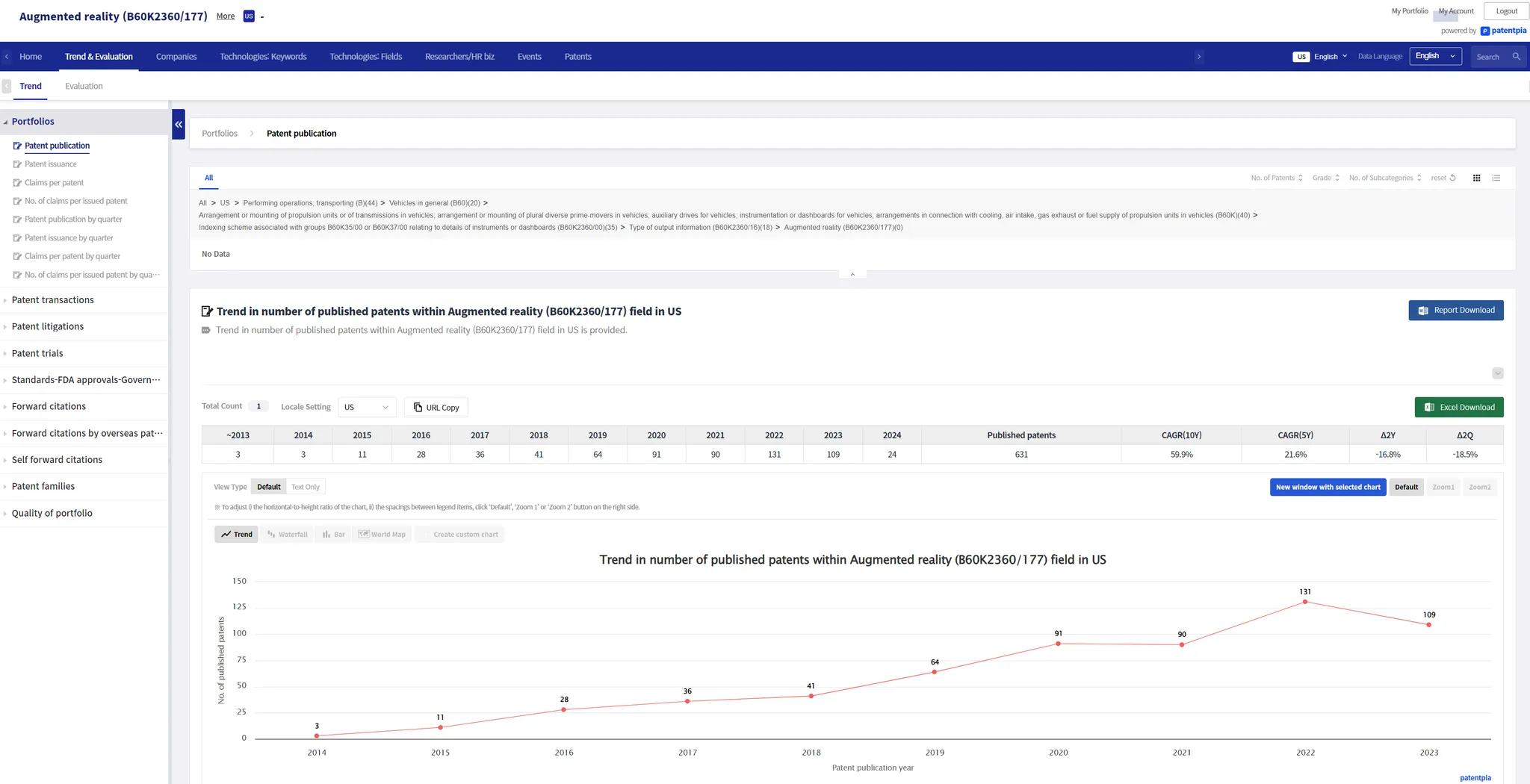 PatentPia provides analysis contents by CPC. Below is Example of analysis contents for Augmented Reality (AR; AR glass).