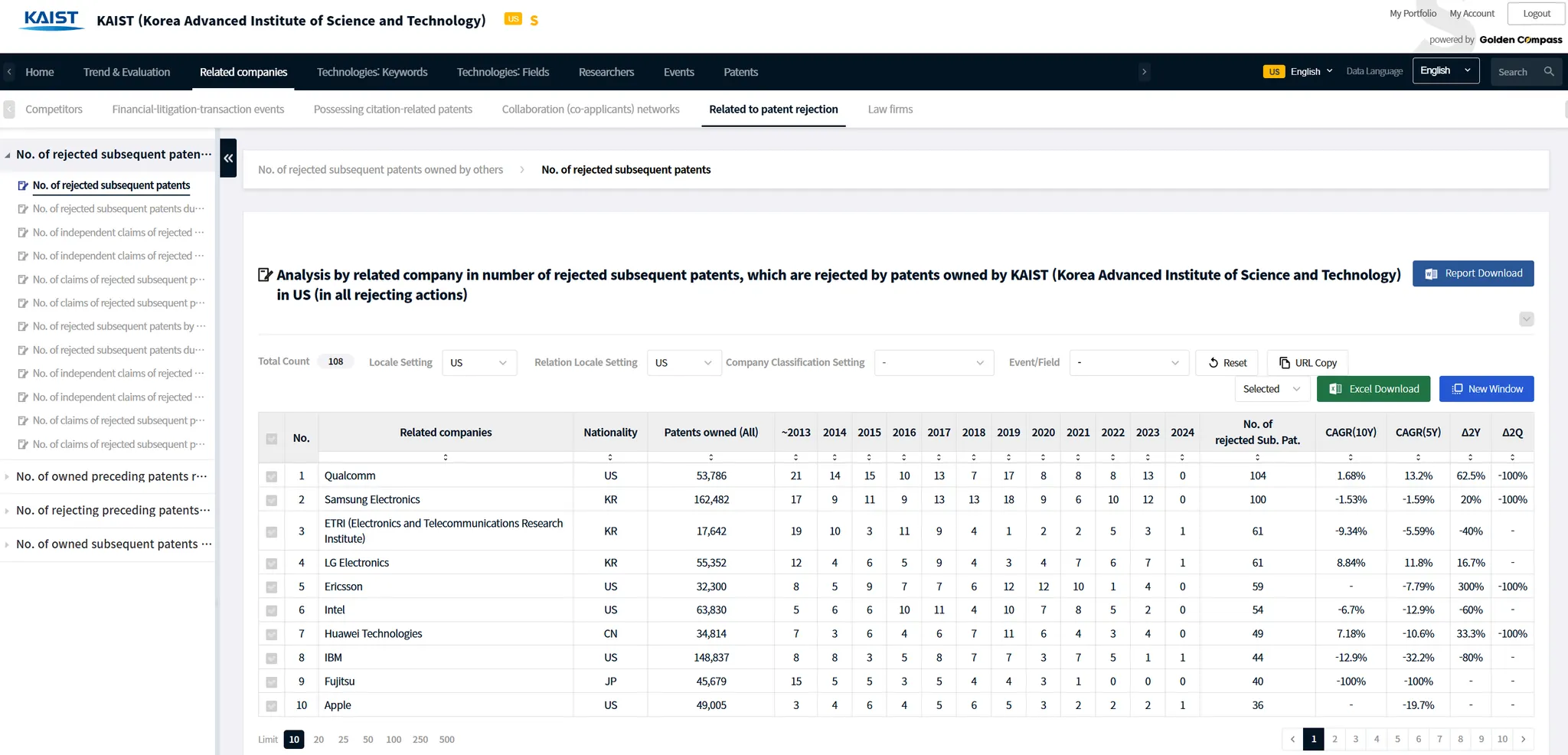 The example below is a trend of companies rejecting subsequent patents in possession of United States of America patents held by KAIST.