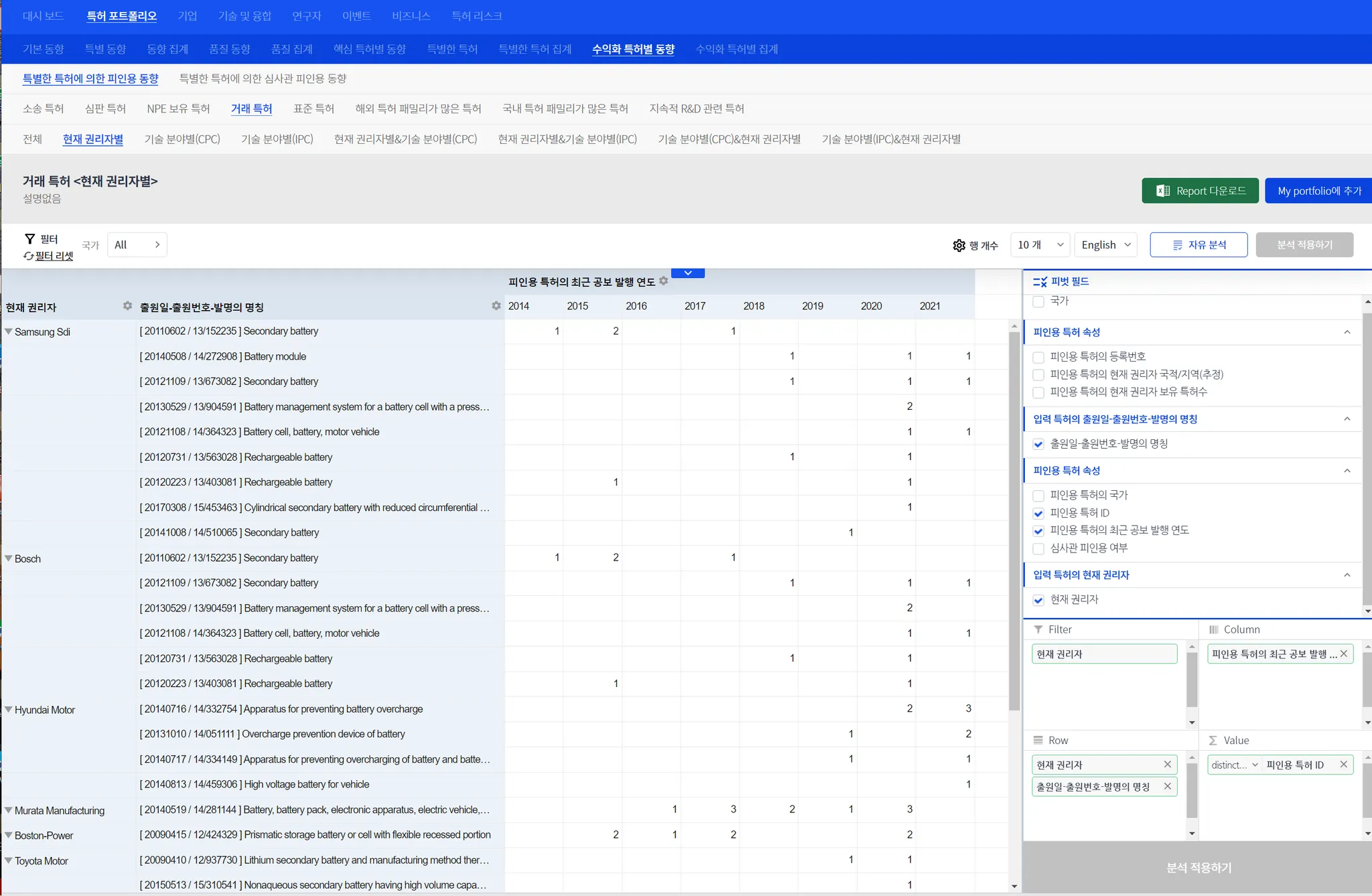 iii) 특허 리스크의 조기 인지 등과 같은 고급 인용-피인용 분석이 제공됩니다.