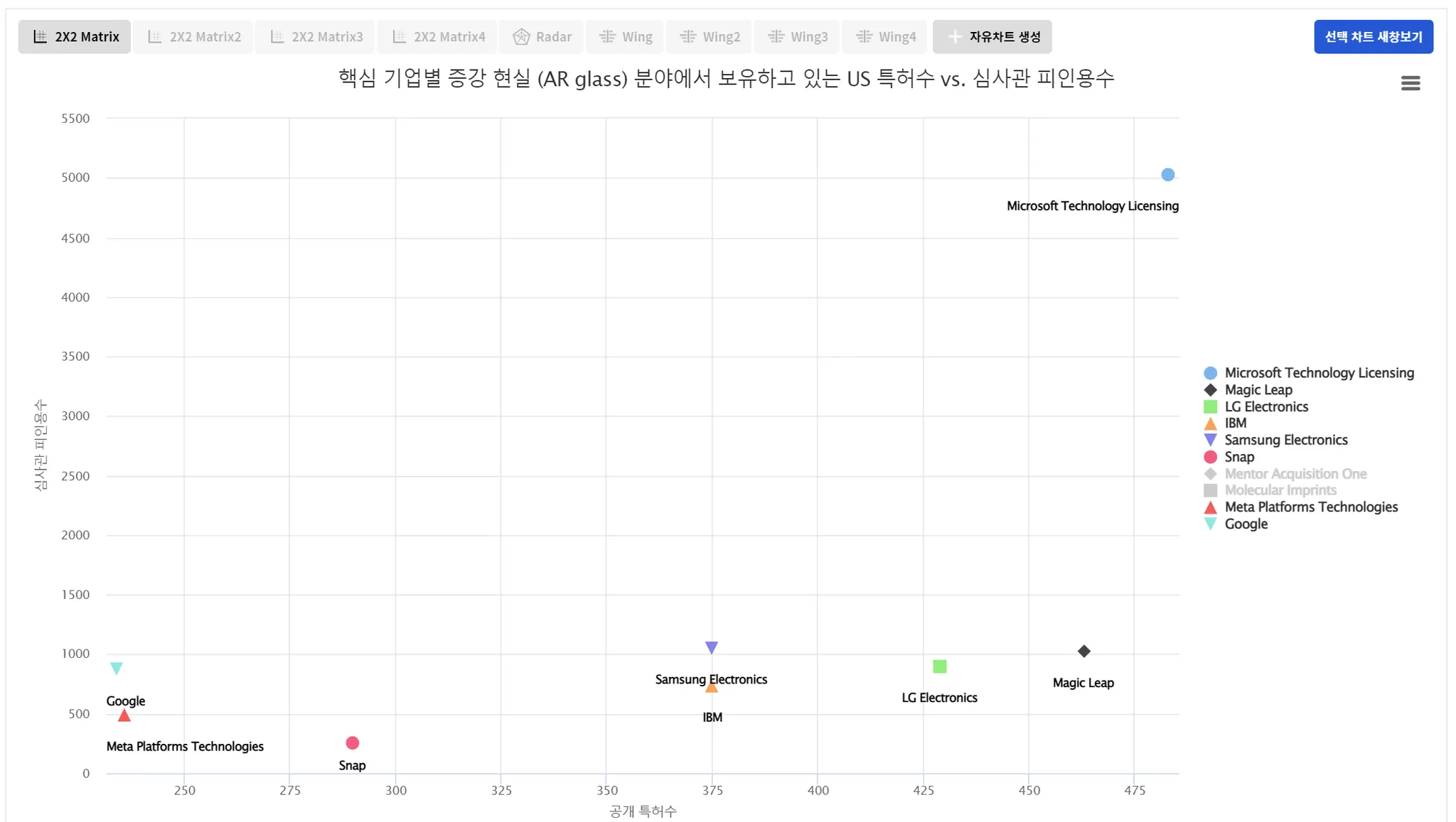 n줄 아이템의 m개의 지표 형태인 경우, 지표가 다양하기 때문에, 지표의 조합이 가능한 자유 차트가 위력을 발휘합니다. 특히, 2개의 지표(지표 2개의 쌍(pair))를 선택하는 2X2 matrix 차트나 wing 차트의 경우에는 자유 차트 기능을 활용하여 의도/목적 지향적인 맞춤형 차트를 생성할 수 있습니다. 물론, 생성된 맞춤형 차트는 URL 등을 통하여 공유/개방 및 재현될 수 있습니다.