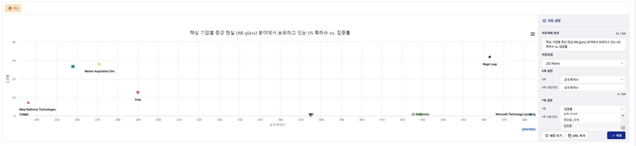 "URL 복사" 클릭을 통한 URL 또는 "새창으로 보기"를 클릭 후 주소창의 URL을 사용하면, 선택된 국적의 기업만 출력되는 분석 화면을 공유/개방/재현 할 수 있습니다.