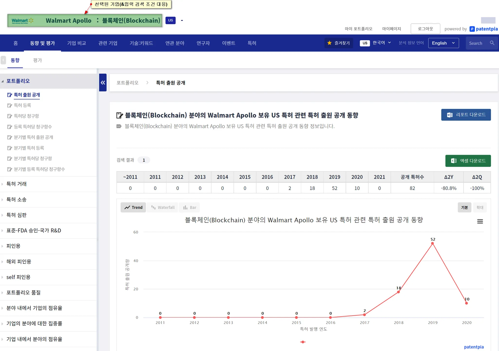비교 대상이 되는 기업군은 i) PatentPia 등이 제공하는 주제별 기업군(given company set)과 ii) 사용자가 업로드 하는 기업군(customized company set)을 대상으로 하는 기업 비교 분석이 있습니다.
