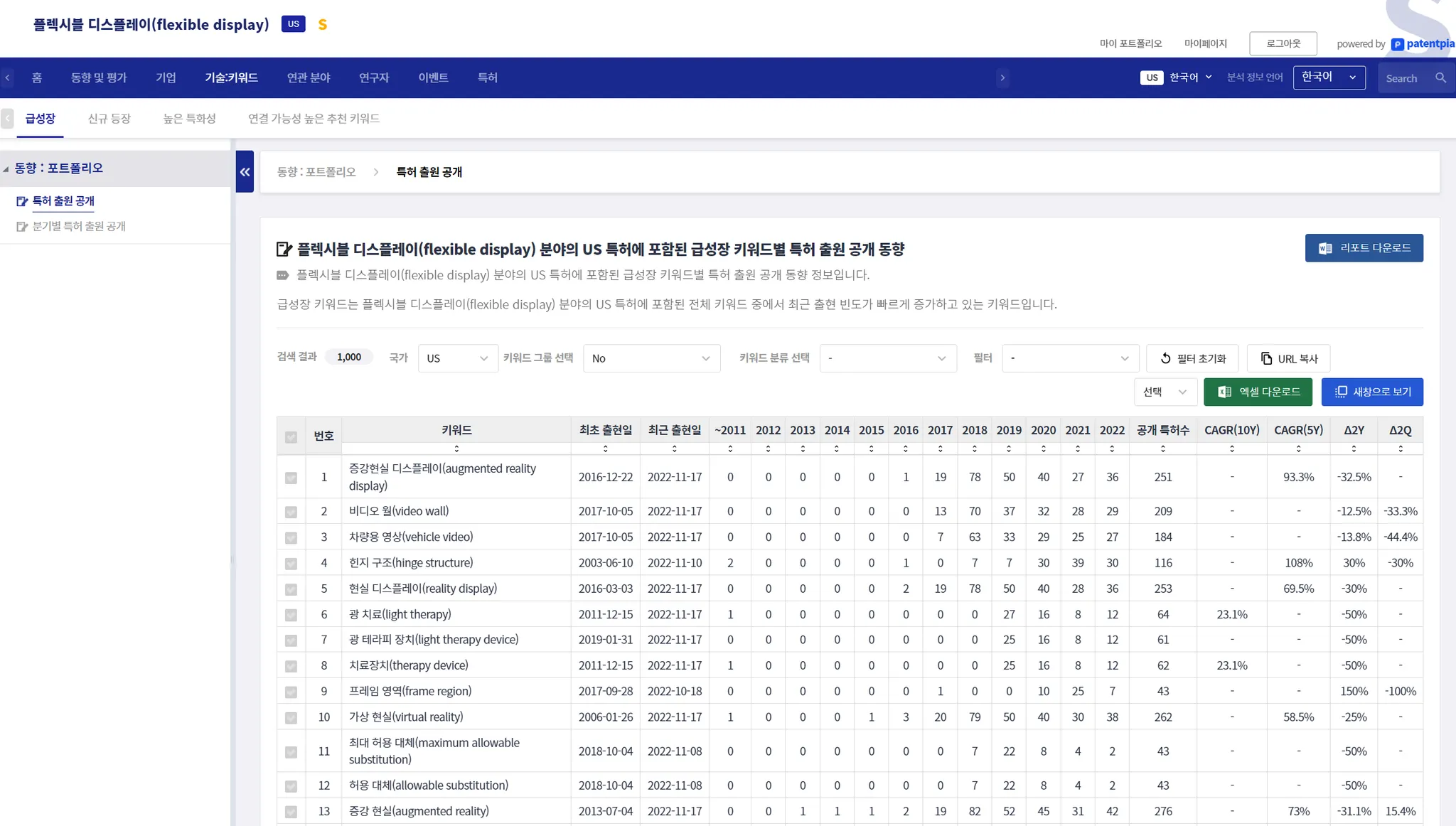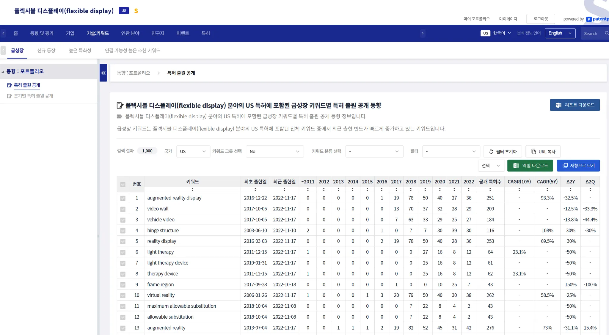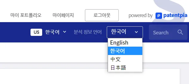 PatentPia GoldenCompass에서 ‘데이터 언어 설정’을 KO로 바꾸면, 영어 키워드에서, 영-한 대역 번역 키워드가 나타납니다.