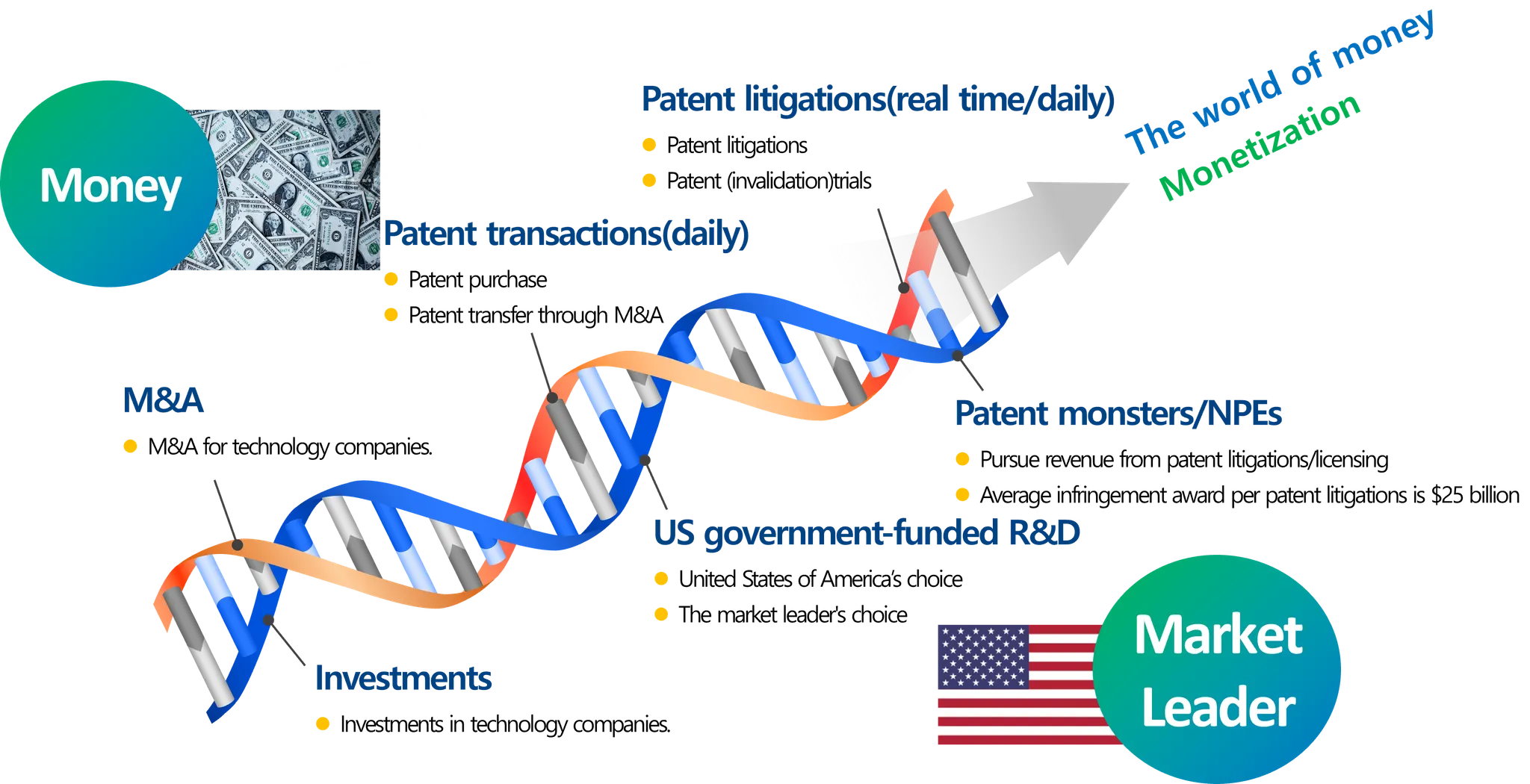 On the other hand, patent data has not only the advantages of papers such as citation information/government-funded R&D history, etc. but also abundant capitalistic elements that are not present in papers such as transactions/litigations/M&A/investments/standards/FDA approvals, etc. Therefore, if these elements are effectively utilized, differential performance can be achieved in i) technology sensing, ii) technology/R&D planning, iii) new product/new service feature/concept planning, iv) utilization/convergence/application exploration, etc.