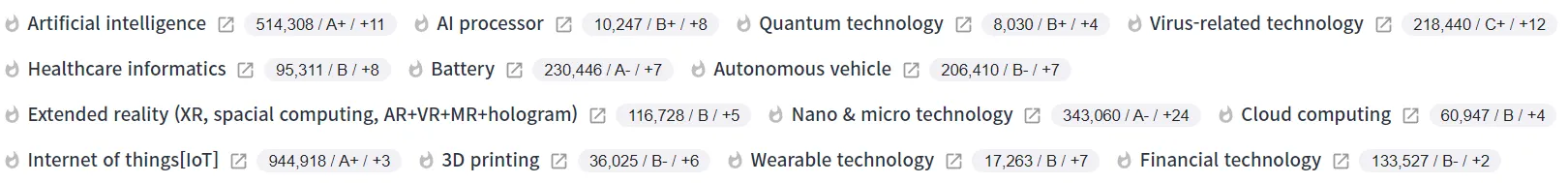 (Note) Select the name of the technology (the letter part). After selecting the first name of the technology, the following lower technologies will appear (drill down). Selecting the icon next to the letter will take you to the analysis contents for the technology.